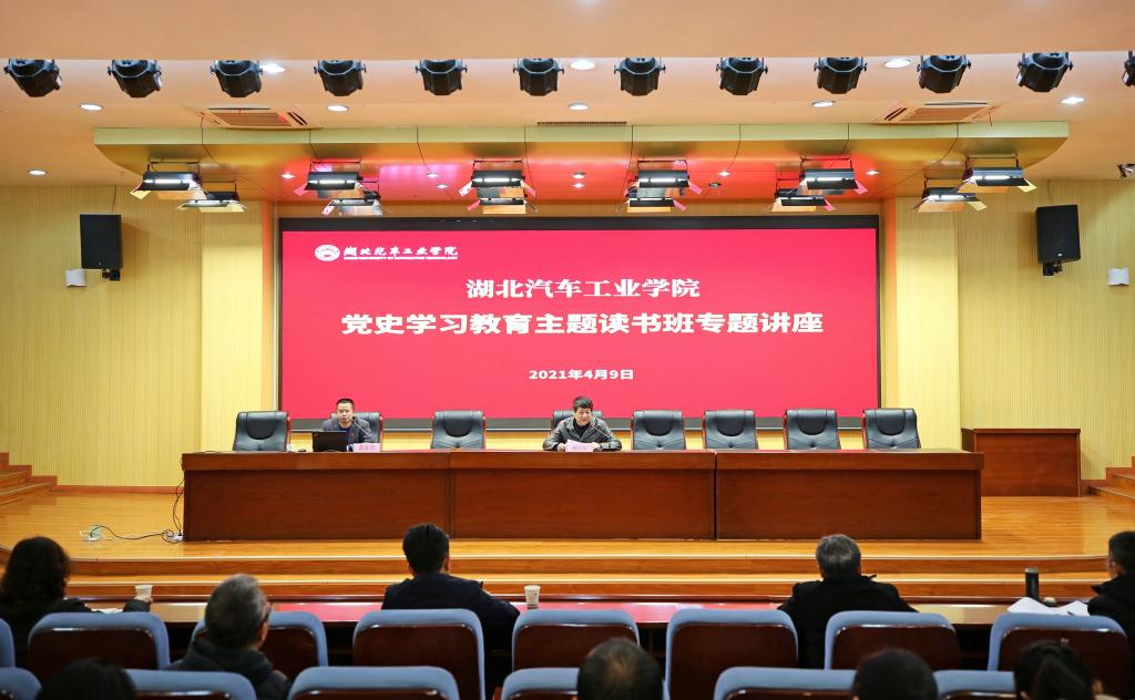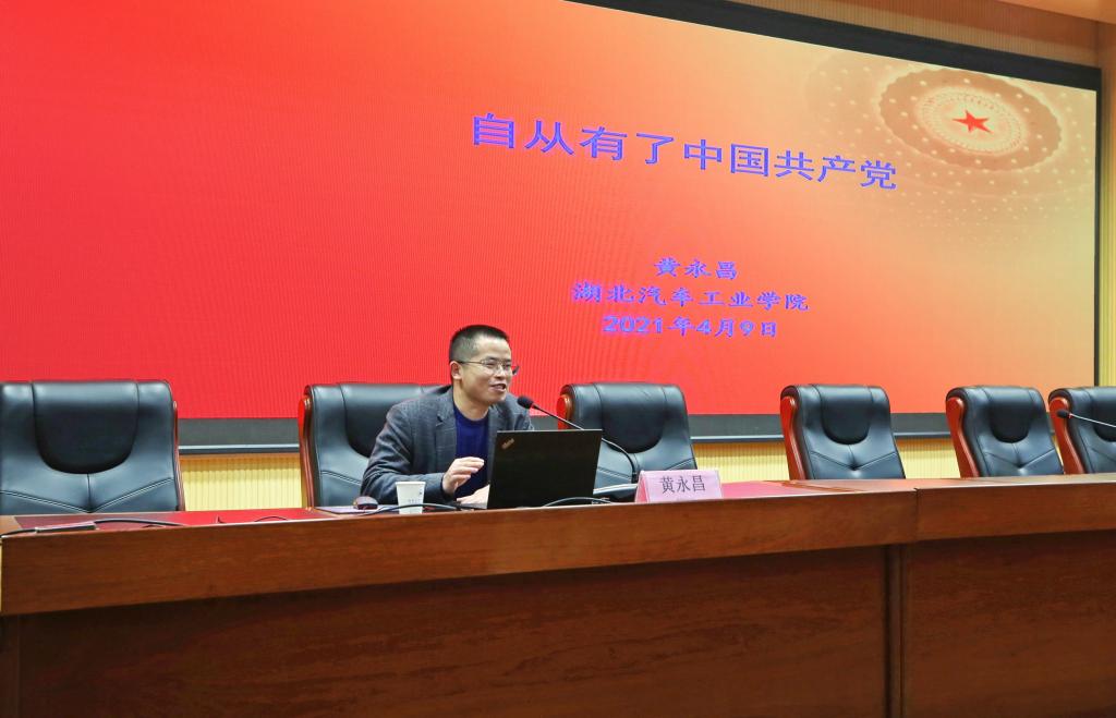 本网讯(文 杜鹏/图 广娟)4月9日上午,学校党史学习教育主题读书班专题辅导讲座第二讲暨明德论坛第三十九讲在逸夫报告厅开讲。十堰市委宣讲团成员、我校马克思主义学院副院长黄永昌副教授应邀作了“自从有了中国共产党”主题讲座。党委书记程红兵主持讲座,学校副处级及以上干部、党支部书记聆听了讲座。