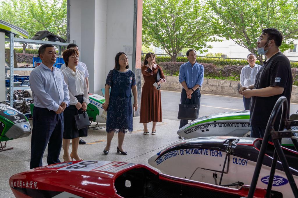 在张红霞、王文山的陪同下,湖北开放大学党委常委、副校长宋移安一行先后参观了主动安全与智能驾驶研究所、武当文化研究与传播中心、新商科智慧实验中心、校史馆、国家级制造装备数字化分中心、东风HUAT车队、汽车动力传动与电子控制湖北省重点实验室、实地了解了我校的汽车特色,直观感受了我校的文化内涵。