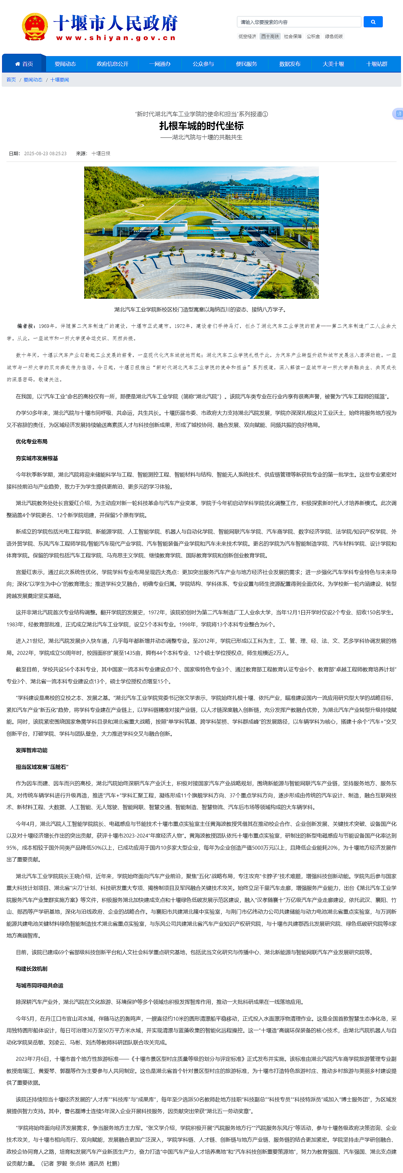 【十堰市人民政府网】扎根车城的时代坐标——湖北汽院与十堰的共融共生