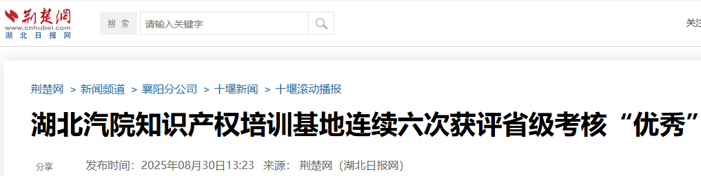 【荆楚网】湖北汽院知识产权培训基地连续六次获评省级考核“优秀”